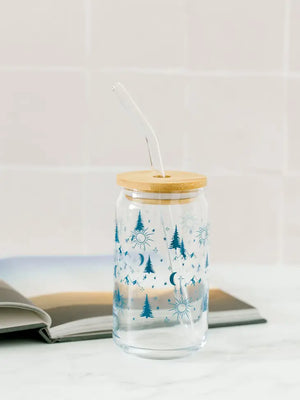 Sip in Style on Your Next Adventure with Our Mountain Glass Can - Complete with Lid and Straw. Glass is dishwasher safe.. *Please hand wash bamboo lid for longevity.